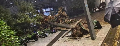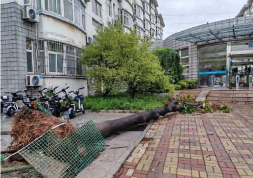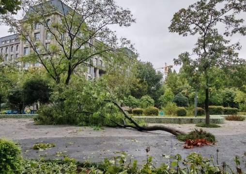 一夜风雨过后,南信大一片狼藉.