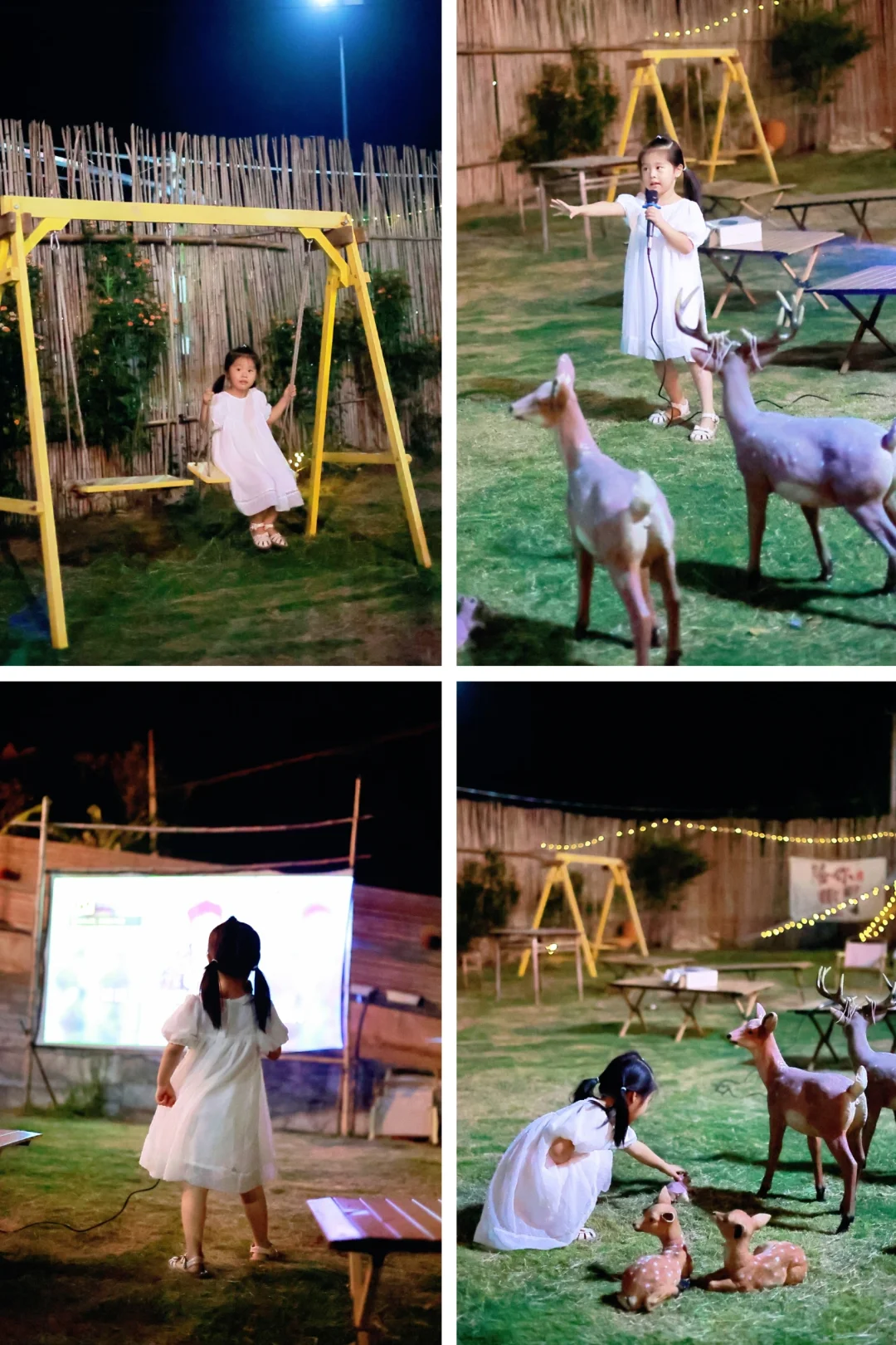 有秋千、儿童滑滑梯、还有露天大屏幕KTV,咕咚拿着🎤手舞足蹈开心的唱着跳着玩得好开心……