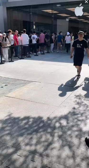 我们一起来看看苹果专卖店情况怎么样,虽然烈日炎炎,但挡不住大排队已经排到了几百米之外!