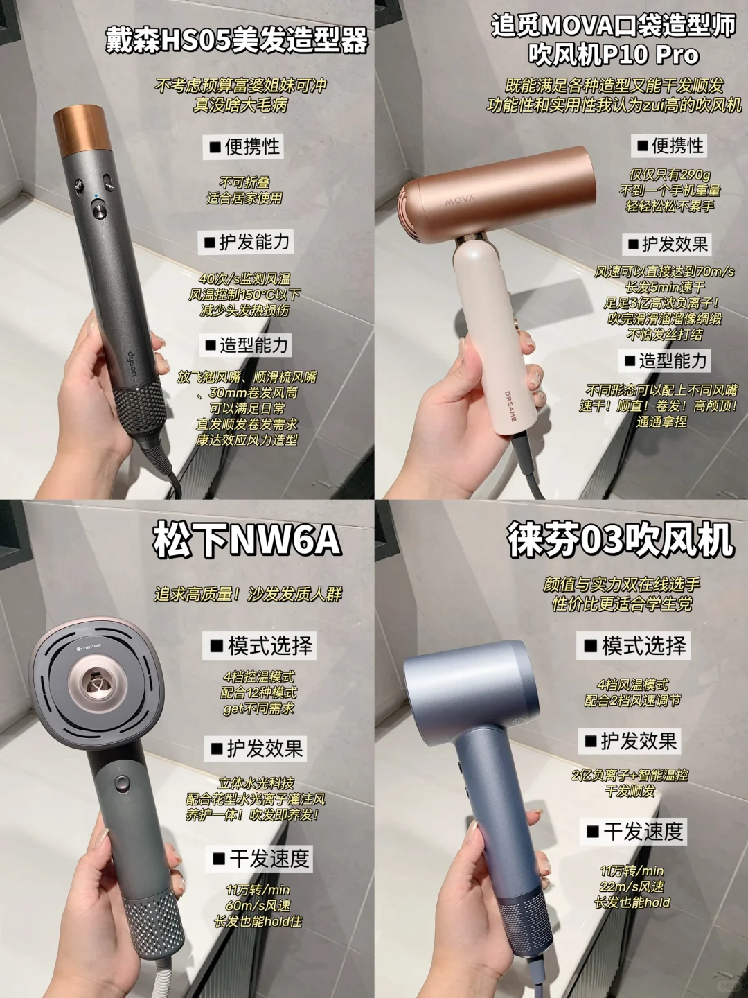 吹风机 吹风机测评 徕芬 松下 戴森 吹风机推荐追觅MOVA吹风机口袋造型师吹风机追觅吹风机追觅MOVA P10 Pro