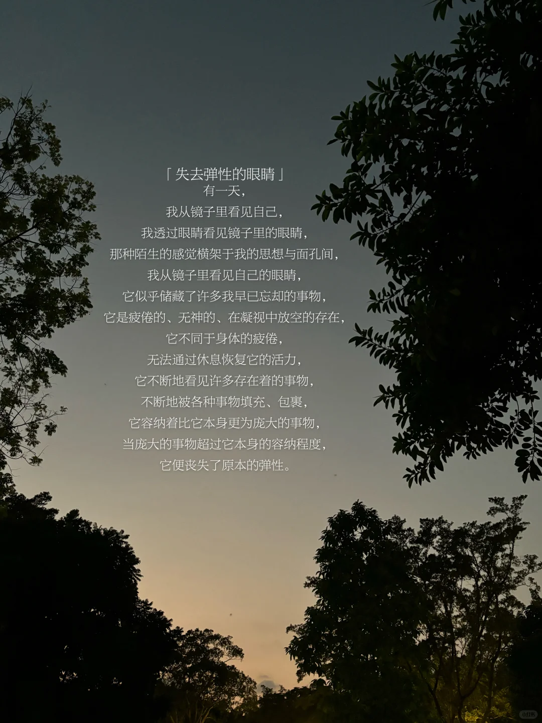 失去弹性的眼睛,好妙的形容。每天上班盯着电脑,眼睛涨痛,下班只想回家闭上眼睛躺床,就像是失去弹性的眼睛。(我也好爱韩江哦!