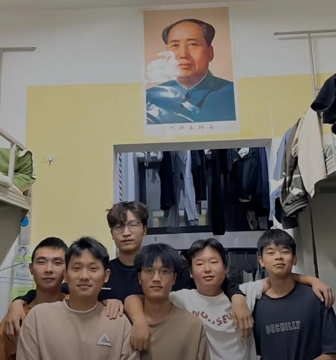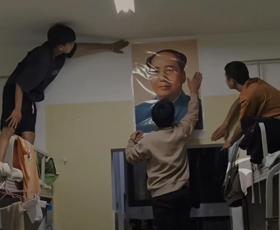 00后大学生热爱毛主席,这是某大学的学生在宿舍里张贴毛主席像!
