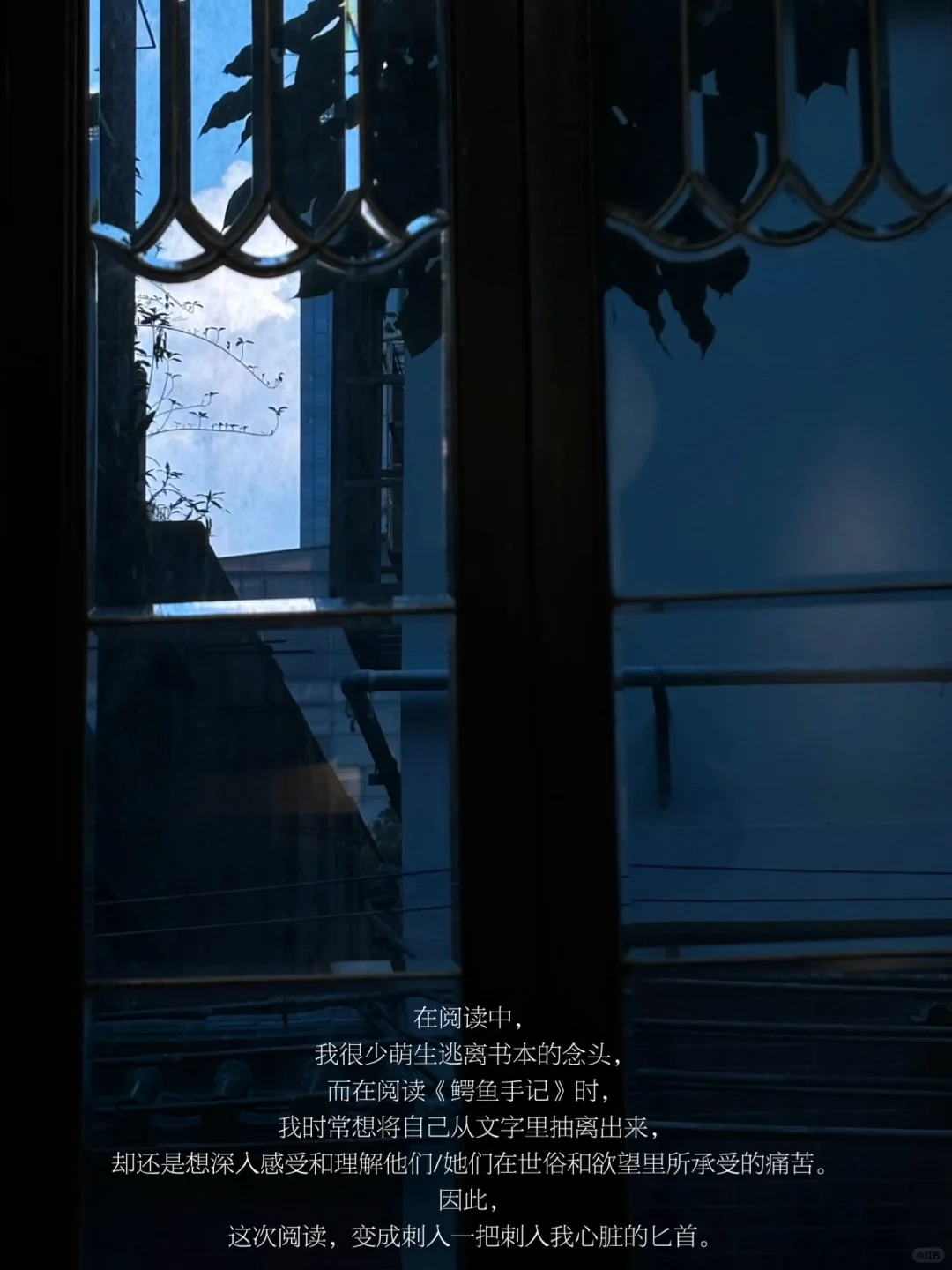 这是一个悲伤的故事、悲伤的结局,但却给予我无尽的、流入现实的思考,敲击我当下的思想,变成从身体呼出的一口气。我感到疼痛,一种潮湿之中关节隐隐作痛却无法缓解的疼痛