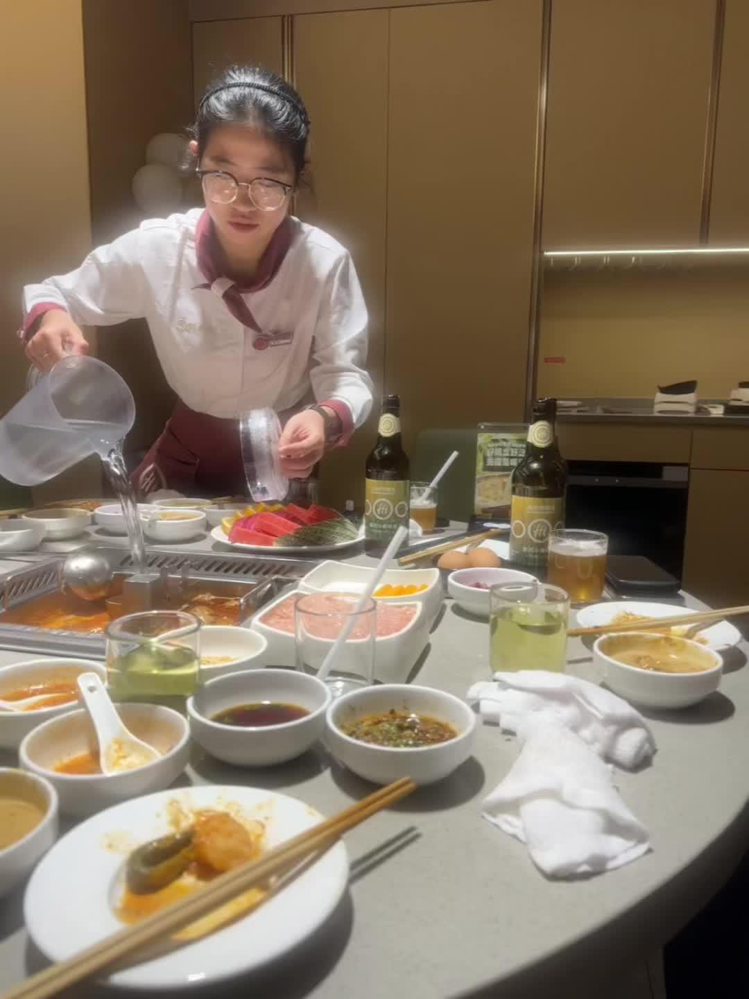 告诉服务员不用打包了 我已经开始装了