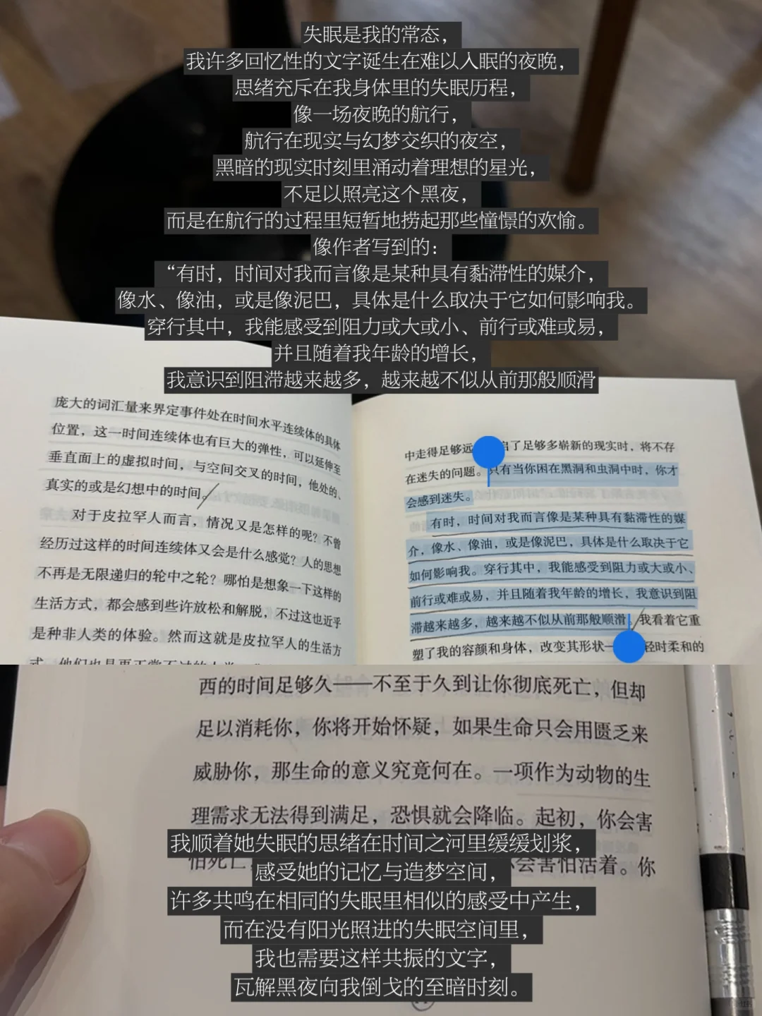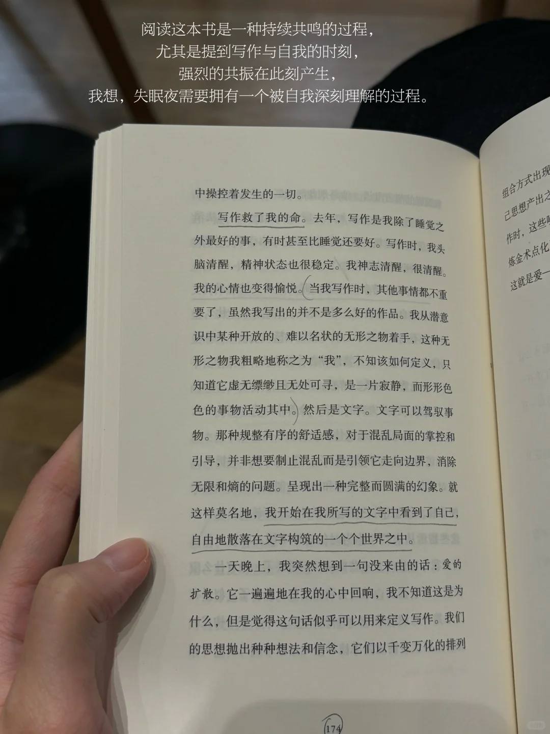 阅读《睡不着的那一年》是一种持续共鸣的过程,尤其是提到写作与自我的时刻,强烈的共振在此刻产生,失眠夜需要拥有一个被自我深刻理解的过程。