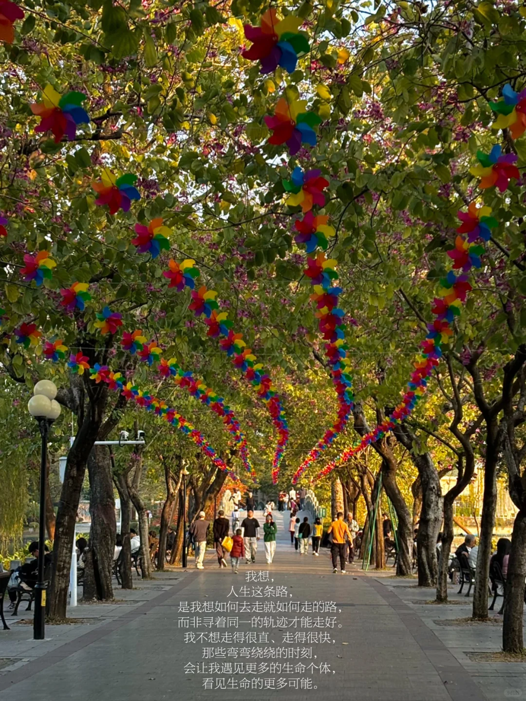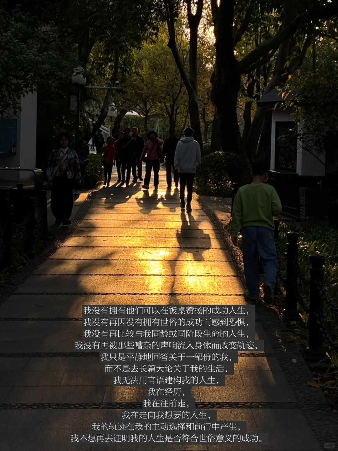 我无法用言语建构我的人生,我在经历,我在往前走,我在走向我想要的人生,我的轨迹在我的主动选择和前行中产生,我不想再去证明我的人生是否符合世俗意义的成功。我想,人生这条路,是我想如何去走就如何走的路,而非寻着同一的轨迹才能走好。我不想走得很直、走得很快,弯弯绕绕的时刻会让我遇见更多的生命个体,看见生命的更多可能。