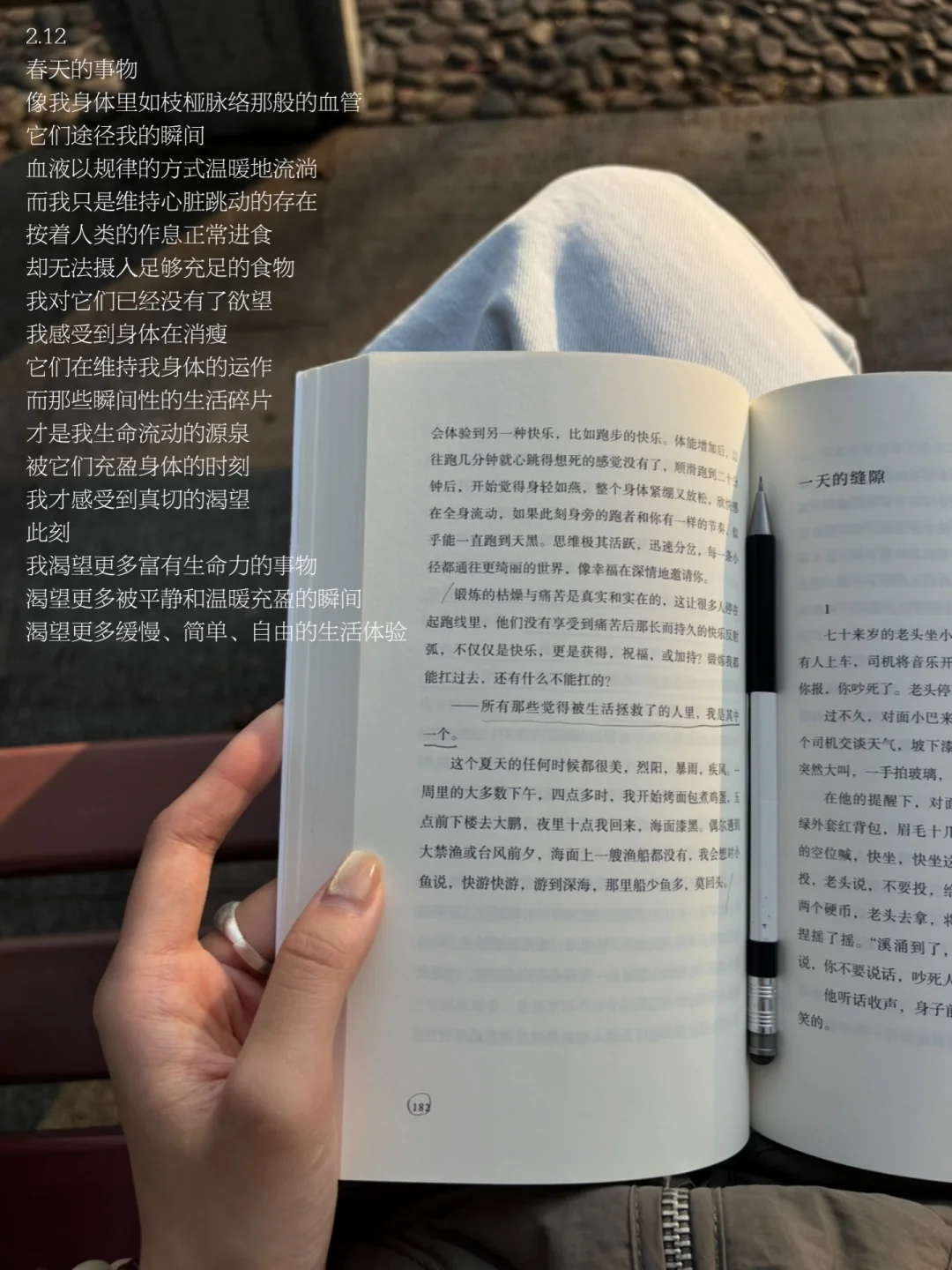 我感受到身体在消瘦,它们在维持我身体的运作,而那些瞬间性的生活碎片,才是我生命流动的源泉,被它们充盈身体的时刻,我才感受到真切的渴望。此刻,我渴望更多富有生命力的事物,渴望更多被平静和温暖充盈的瞬间,渴望更多缓慢、简单、自由的生活体验。