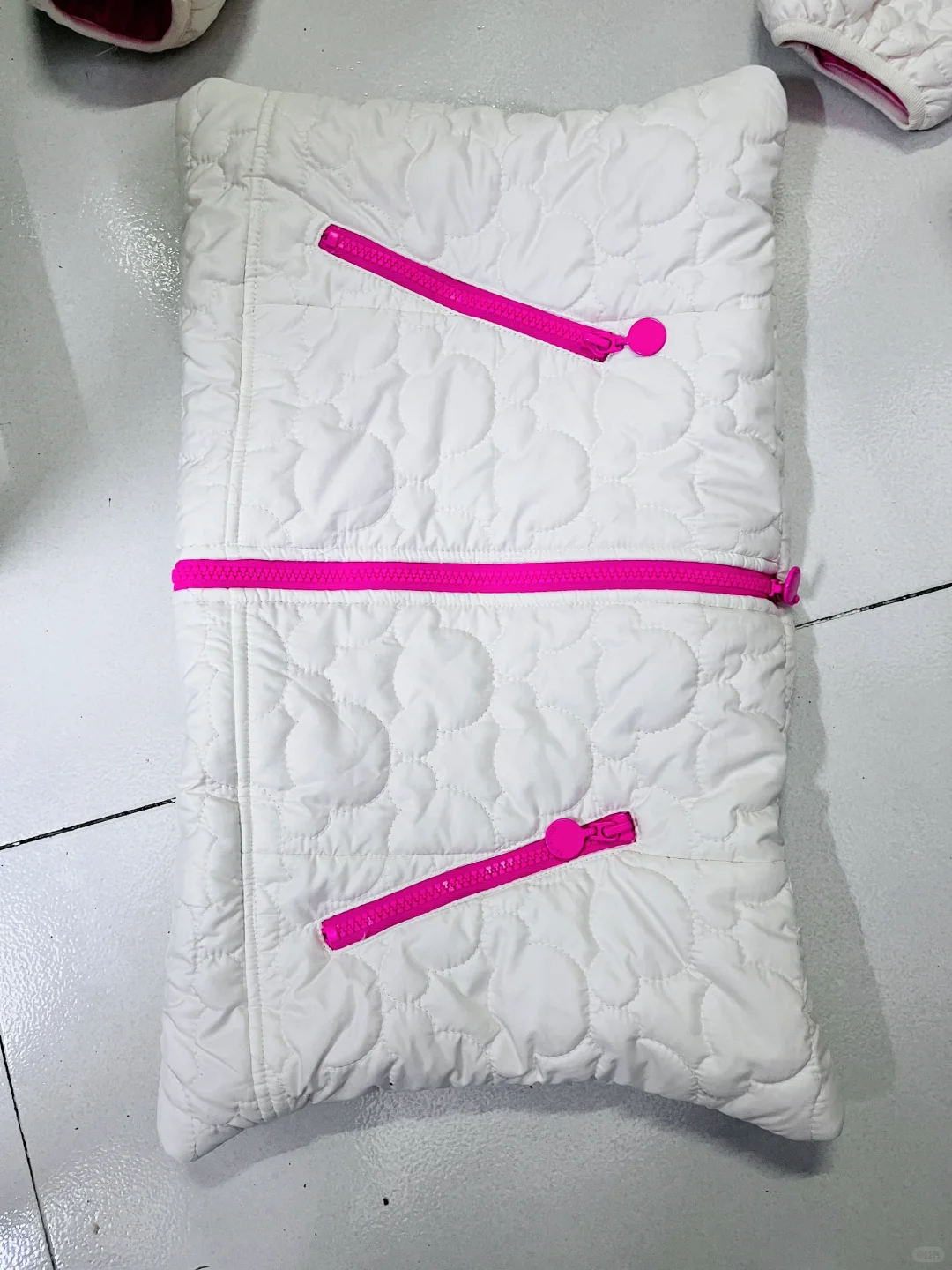 可以用不穿的羽绒服改造一个婴儿睡袋,孩子在家里睡觉的时候,直接放在睡袋里面,浑身都暖和。就算坐在婴儿车里面,外出也可以将羽绒服变成一个睡袋,防寒保暖。