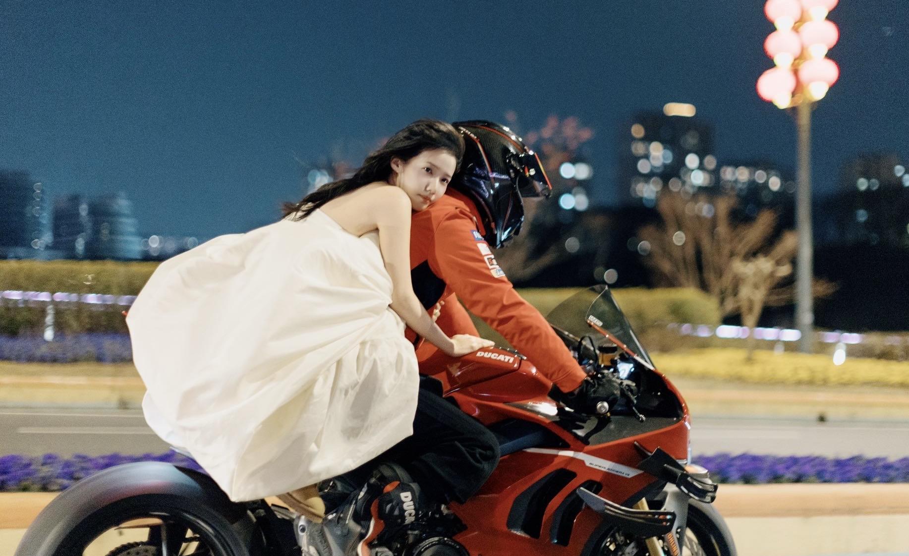 婚纱配机车。