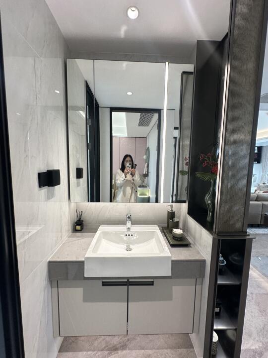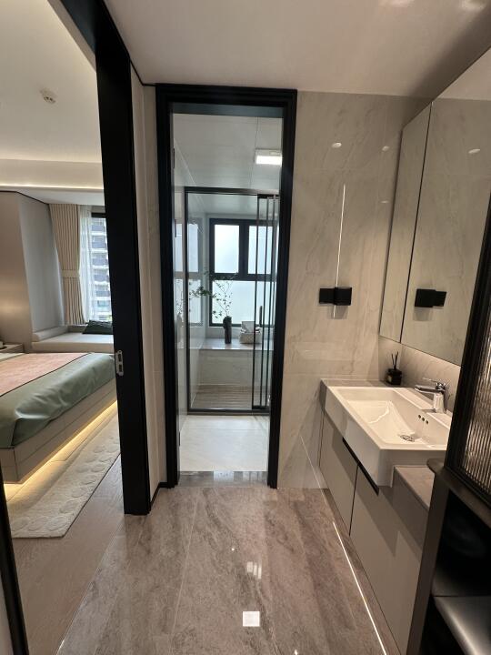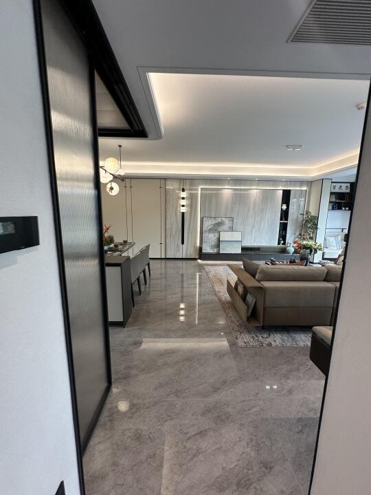 全屋通铺的750×1500瓷砖,顶部弧线造型