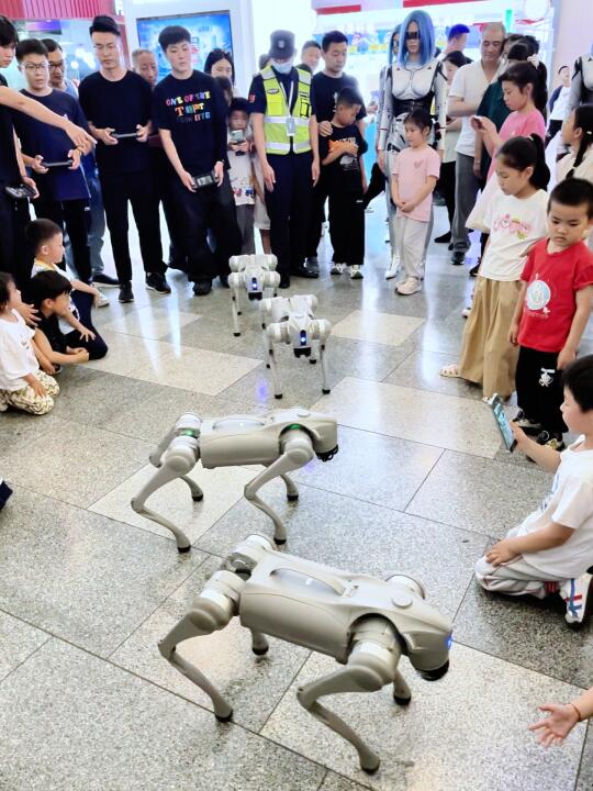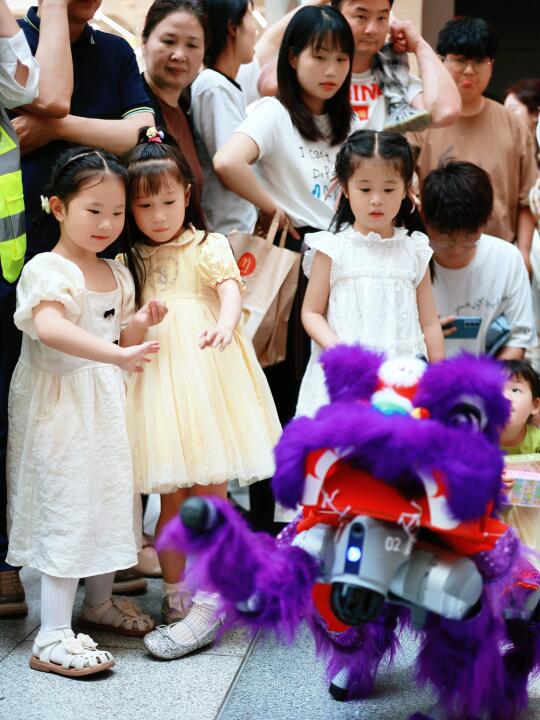 炫酷的”荟聚未来机甲方阵“巡游以及仿真美雨机器人、披着舞狮外衣的机器狗大巡游,现场人气爆棚活动氛围感拉满!