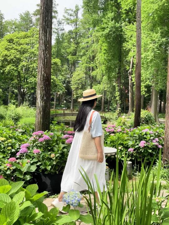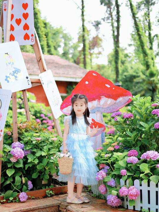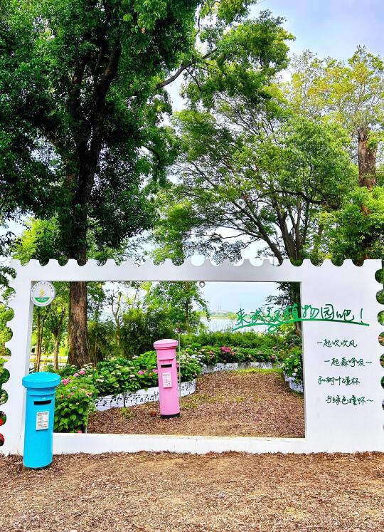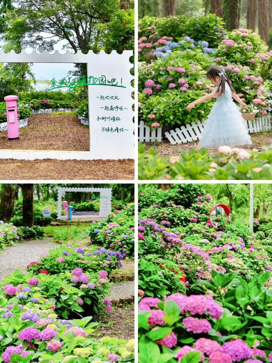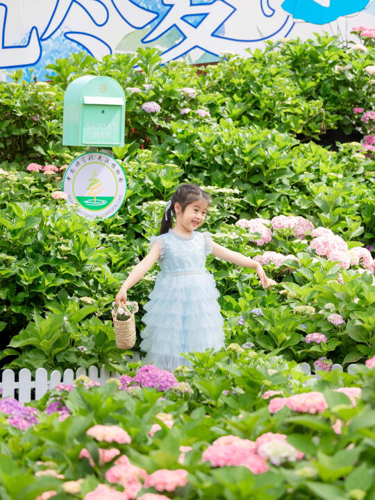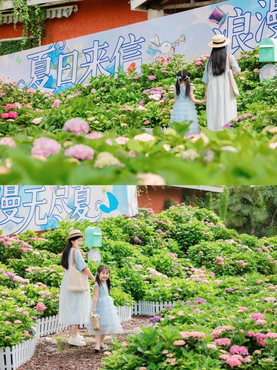 大片绣球花海,可以拍出莫奈花园的感觉,以及各色卡通花车、蓝色信箱📪