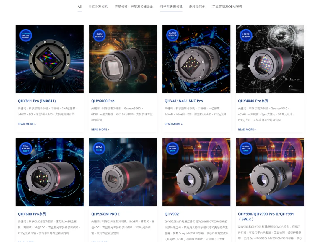 在星空摄影领域,最顶级的天文相机是国产的QHY。同样,科研、工业相机领域,中国的相机都在第一梯队。
