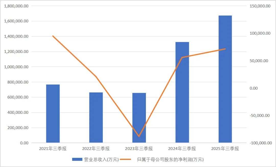 公司第三季度单季业绩非常闪耀:实现营业收入65.39亿元,同比增长54.60%;归母净利润6.98亿元,同比大幅扭亏(去年同期亏损3683.8万元),同比增长1994.42%;扣非净利润4.47亿元,同比增长1162.09%。