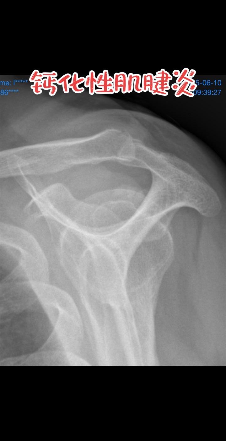 钙化性肌腱炎。半夜痛醒、抬手都困难,片子里亮亮的那一团就是罪魁祸首!
