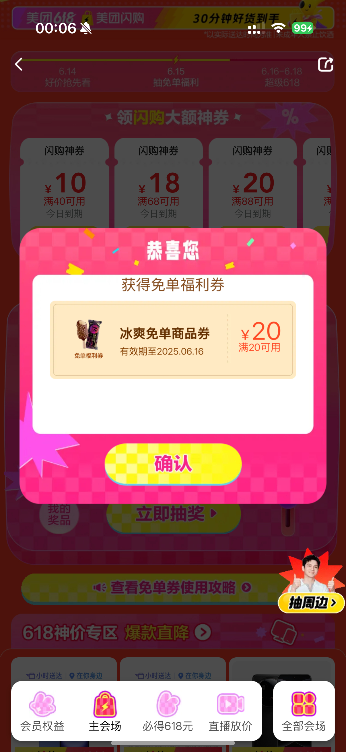 6月15日专属福利风暴来袭!上美团App搜索🔍「樊振东」直达福利会场~点击抽奖