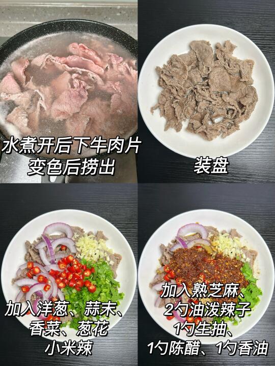 1️⃣锅里烧水煮开后,加入牛肉片烫一下捞出