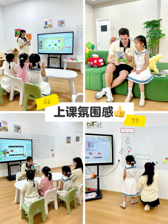 课后采访小学员,我家咕咚兴奋地说感觉像多了个超酷的外国朋友,现在每天都盼着上课聊天、做游戏,看到孩子学得开心又有收获老母亲超欣慰!