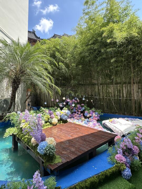 喜欢带阳光的下午茶啦!怎么拍都很舒服 天气好的时候喝下午茶都很享受 花园和高颜值下午茶真的超级适配 📷好几个场景可以拍 建议晴天比较好看 每个角落布满了鲜花🌷绿植🪴绣球花💐充满生机和活力 趁着新开人少 快去打卡吧姐妹们~