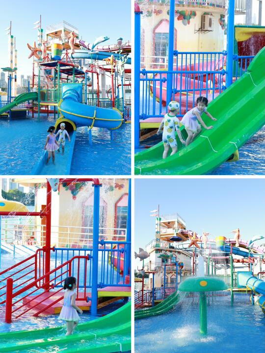💦儿童浅水区:各种喷水设施,小型滑滑梯、超大型滑滑梯:适合8岁以上小朋友,比较刺激