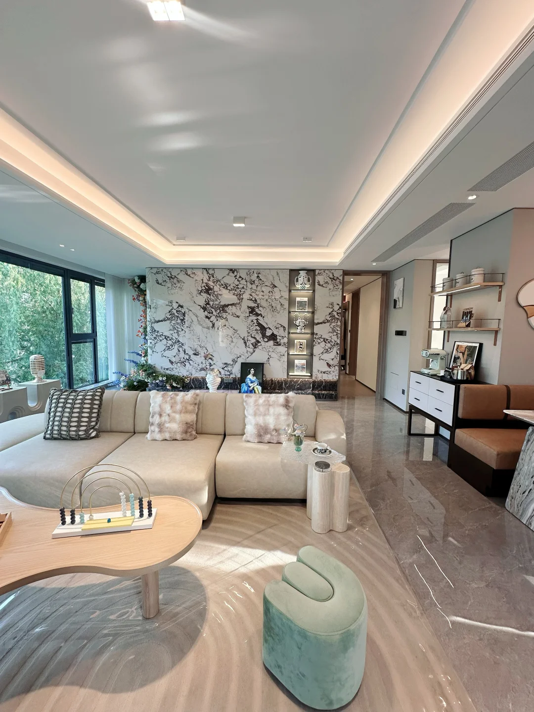 看了130平的房子,做到了三开间朝南,餐客厅连在一起,摆个大沙发+餐桌都不挤,阳台有6米长,一边养花一边放跑步机完全ok。主卧带独立卫浴和衣帽间,卫生间还有飘窗,早上坐在这儿化妆采光绝了🛋️
