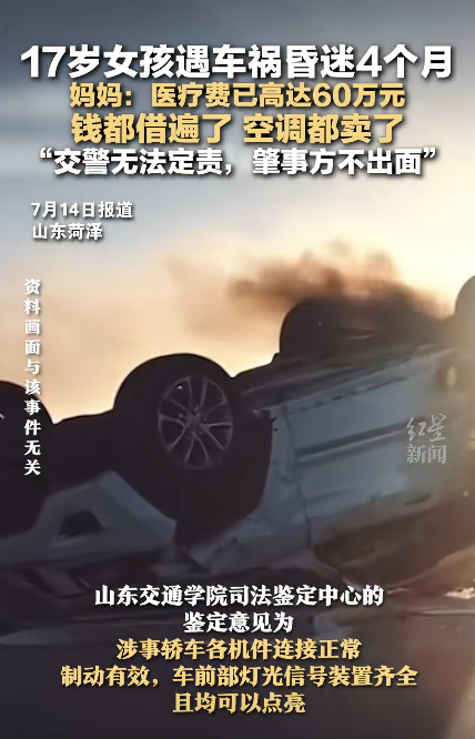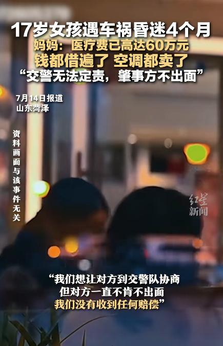 山东菏泽,17岁女孩遭遇车祸昏迷4月未醒,医疗费已高达60万元,由于无法查清事故