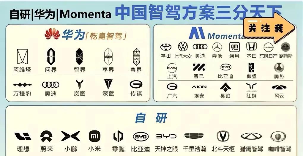 以后谁还买老年车啊,非智驾车迟早会淘汰。 目前国内的智驾阵营基本就是三足鼎立的局面,华为鸿蒙一派,momenta一派,自研一派。华为鸿蒙在溢价上有发言权,有生态有口碑。比亚迪在保有量上有优势,自家的车路上越多智驾越好用。 曾经高高在上自诩代表豪华的德系bba不得不低下高傲的头颅,选择加入阵营了,自己没那个研发实力,打不过就加入。至于日系,属于破罐子破摔了,还在玩它的拼接车门点焊工艺硬塑料卤素灯织布座椅,就这还有人买也是奇了怪了。 事实就是,中国品牌汽车基本就是全球汽车行业的引领者了,中国汽车的智驾水平属于全球领先的独一档。