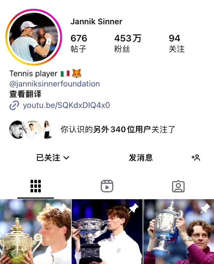 温网结束后,尽管未能成功卫冕,但阿卡的粉丝数依然远远超过辛苦温网冠军辛纳。 阿卡