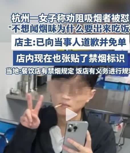 “太不讲道德了” 近日,浙江杭州,一女子在烧烤店用餐时,发现临桌有两名男子在吸烟,就上前进行了阻止,没想到,七八个吸烟男子对女子进行围攻“真是没事找事,这么矫情,就别来饭店吃饭”。 这姑娘好心劝人别抽烟反被怼,确实挺憋屈的。警察到场直接点明法规,室内公共场子完全禁烟,不光要罚钱50到200元,二手烟对小娃、孕妇或肺不好的更危险。大伙儿网上一边倒撑她,比如有人说自己烟瘾再大,看到妇女小孩立马躲去室外抽。多些自觉避开别人,既护健康又显素质,餐厅环境清新了大家才吃得香。