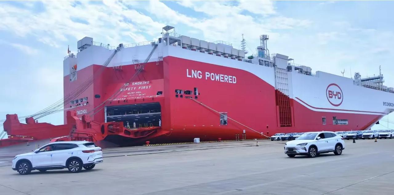 有的车企在造船出海,有的在钓鱼和看电视 比亚迪郑州号开启运电车的职业生涯,第一批车是从深圳起航,到杭州宁波港再装上大批汽车,第一站开往东南亚。 我有个感觉比亚迪是在物流上一分钱也不外流,有的时候可能汽车赚得不多,但供应链却是大赚特赚,像雷军的yu7,表面看是小米的车,其实这电池一半都是比亚迪的,骨子里还是王传福赢了,也怪不得王传福到了北京,去看望雷军了,这是有钱大家赚。 这条郑州号长200米,宽38米,吃水达9米,速度是18.5节,车位整整7000个,真的是太牛。 另外看看贾跃亭,真的是设计天才,把投影大屏直接按到了车头前面,把蔚来李斌的乐道L90前备箱创意直接秒杀。 有的车企在造船出海,有的在钓鱼和看电视。