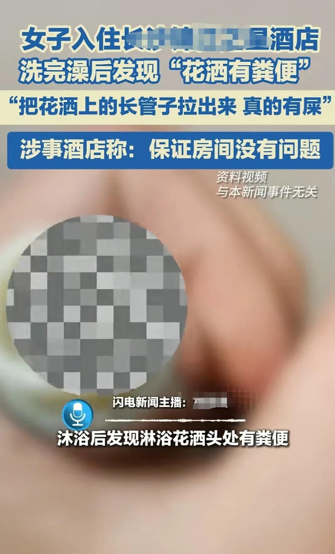湖南长沙,女子前一晚入住酒店,第二天洗澡时发现花洒有粪便,通知前台后,工作人员