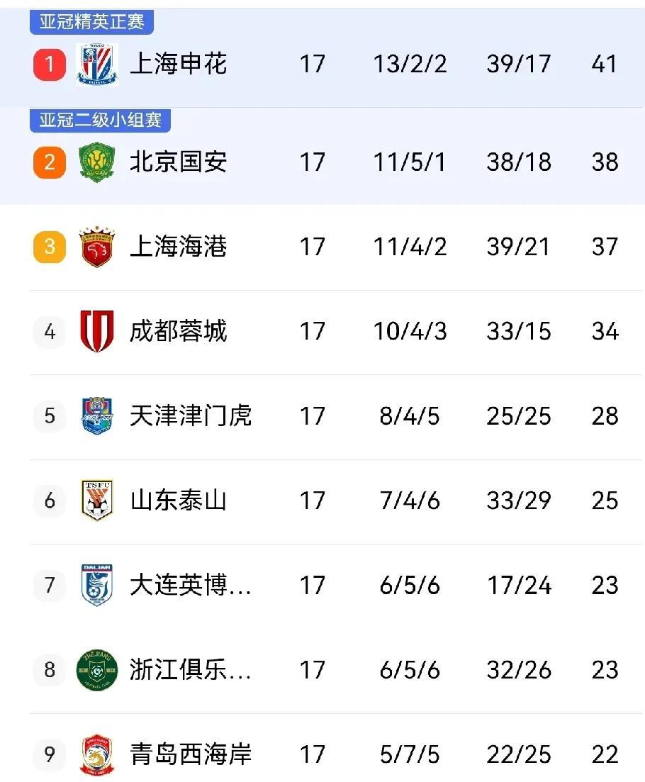 中超联赛还剩下13轮,上海申花队夺冠前景一片大好。 一是申花以积41分领先第二名国安3分排名联赛榜首位置,且净胜球比国安队多2个,这是申花队的一个“巨大”优势。 二是老将吴曦焕发第二春,于汉超一如既往的稳定发挥,新外援阿苏埃首秀即破门,申花实力稳中有升。 三是中超联赛排名第二国安38分、第三海港37分、第四蓉城34分,三支球队都存在一定的问题,国安后卫线如同豆腐渣、短时间内问题难以解决,海港奥斯卡离队、武磊伤病球队竞争力严重下滑,蓉城队主教练徐正源公开炮轰俱乐部,球队内部矛盾重,上一轮败走津门虎已显下滑趋势。 四是申花后13轮赛程十分有利,只有两场硬仗且还都是主场,分别是第20轮主场对阵海港队、第25轮主场对阵蓉城队,拿下这两个对手,中超联赛冠军基本上已是囊中之物。 对此,大家有怎样的看法?欢迎发表你的观点!