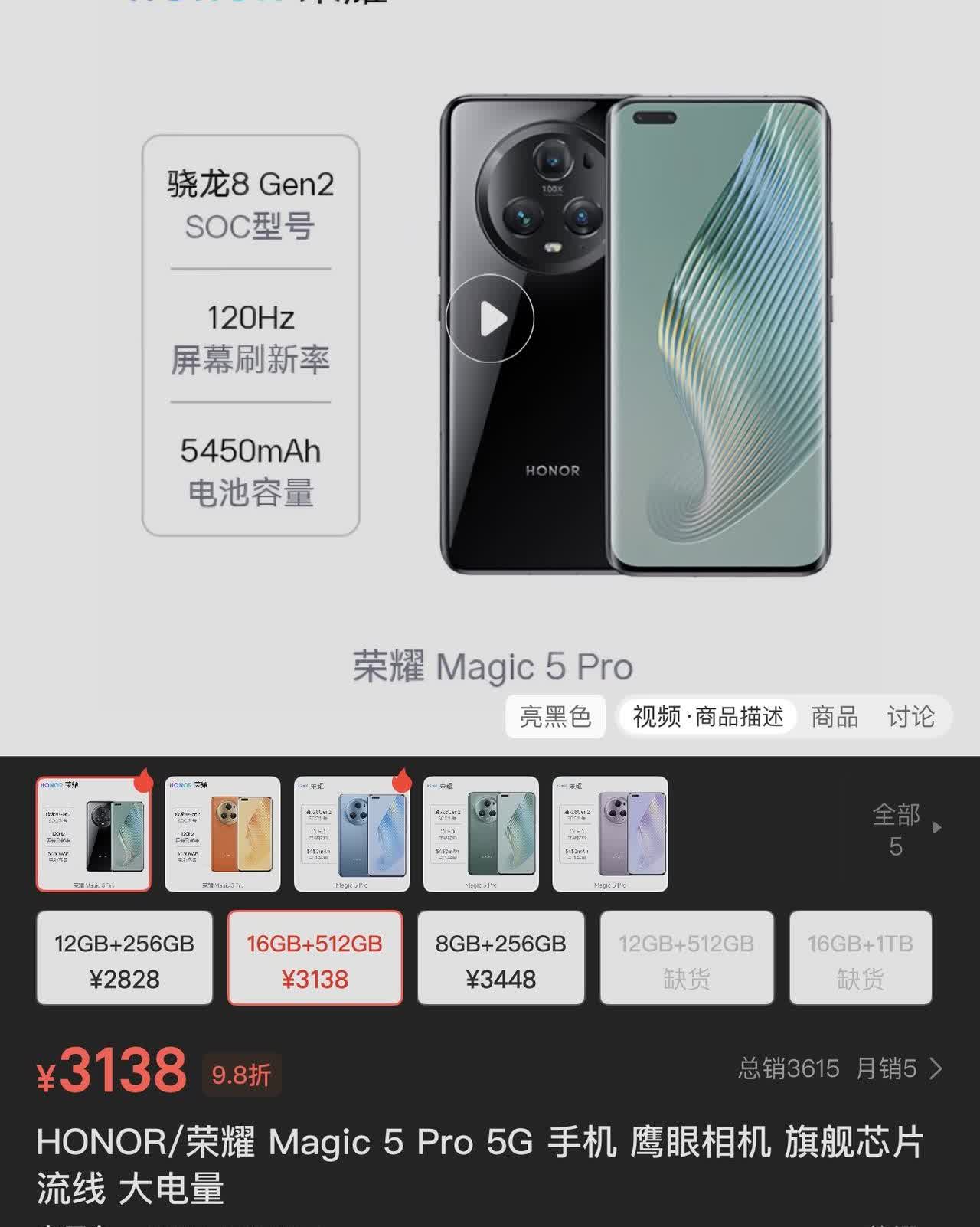 不得不说,国补还是想!有了国补的加持,16+512G荣耀Magic6 Pro(价格为3198元)只比16+512G荣耀Magic5 Pro(价格为3138元)贵了60元,性价比直接拉满[灵光一闪]