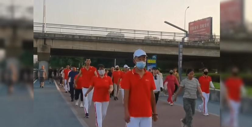 辽宁朝阳暴走团朝我们走来了,拖着音响,唱着军歌,雄赳赳,气昂昂,走出自信的步伐。东北人个子高,好多人一米八以上,大妈也有一米七。还是生活好,无忧无虑,如果每天忙着为生活奔波,哪有时间搞这。去江浙沪看看,七十岁老头老太太,早上六点多骑三轮车去赚钱了,农村房价上万,竞争特别激烈,跑得慢了不行啊!