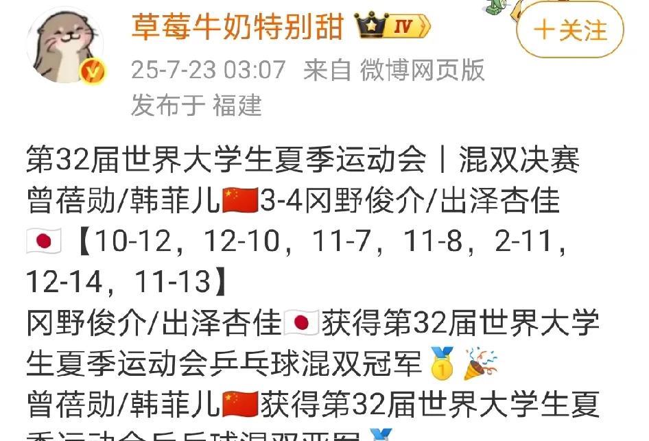 国乒大运会连丢四冠,混双曾蓓勋和韩菲儿3:4再输日本的冈野俊介和出泽杏佳失金。场