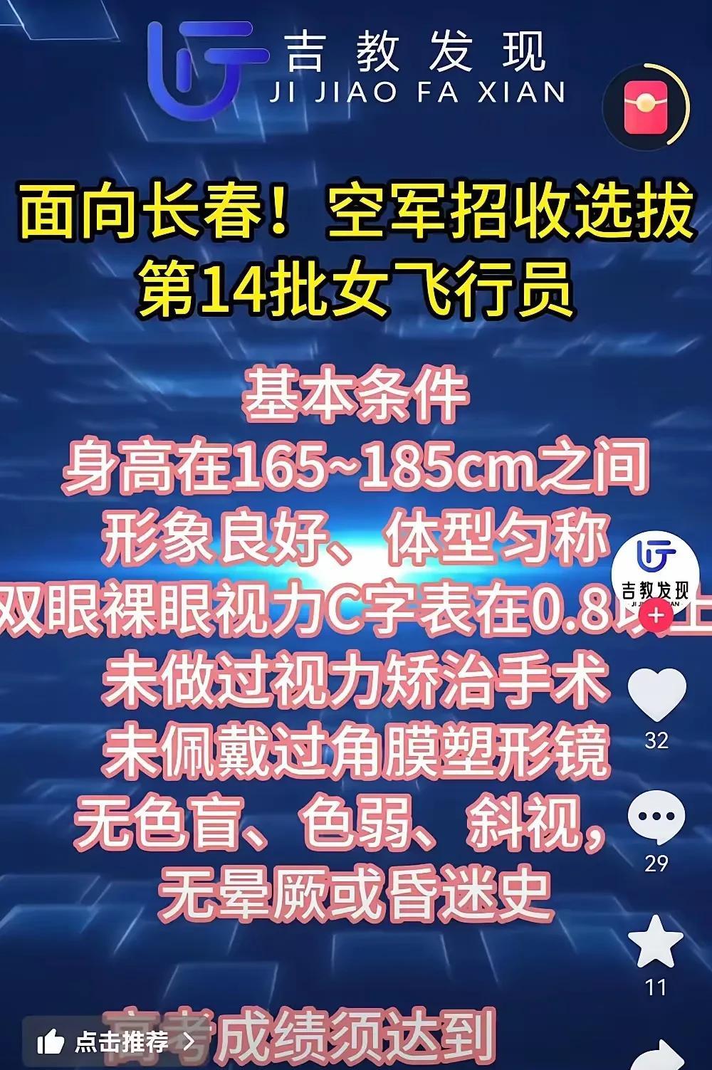 吉林斗鸡眼女飞行员引争议!并且还是吉林省唯一!高调宣传的背后,只因她爹也是飞行员!难道高考这座号称人生二次“投胎”改变命运的机会,也正式进入拼爹时代?有人说,她沾了没有其他人报考的光,你信吗? 点点关注不迷路,文章右上角关注下小编账号,感谢支持与厚爱。 #中国女神飞行员# #女战机飞行员# #最美女飞行员# #北大女飞行员# #王牌女飞行员# #女兵飞行员# #24岁女飞行员# #客机女飞行员#