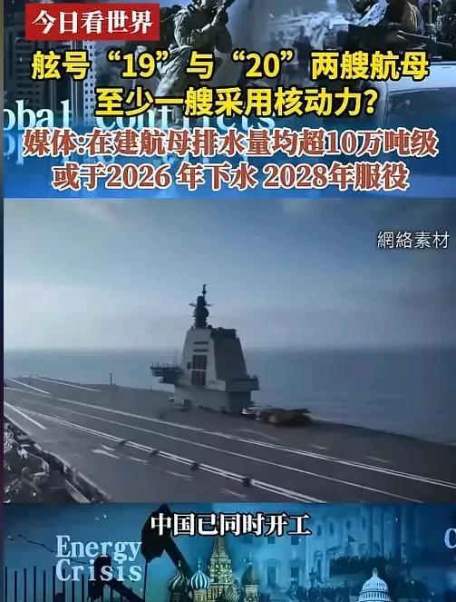 据西方媒体报道,中国已同时开建二艘排水量超过10吨级以上的核动力航母,舷号,19