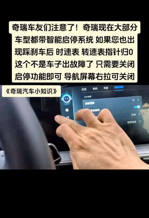 奇瑞车友们注意了,奇瑞现在大部分车型都带智能启停系统,如果您也出现踩刹车后时速表、转速表指针归0,这个不是车子出故障了,只需要关闭启停功能即可,导航屏幕右拉可关闭。 《奇瑞汽车小知识》。