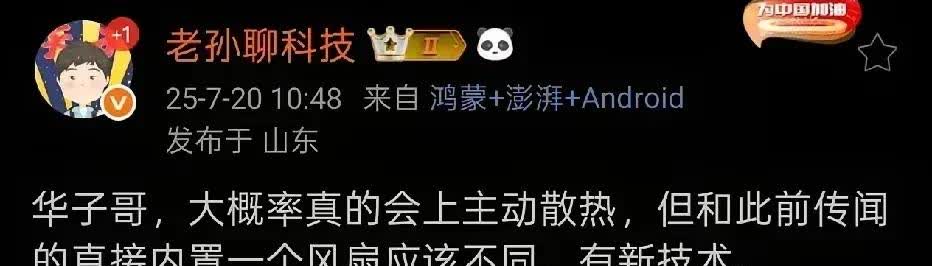 华为真的要给手机上主动散热了 据一大V透露,华为要手机上主动散热了,不过不