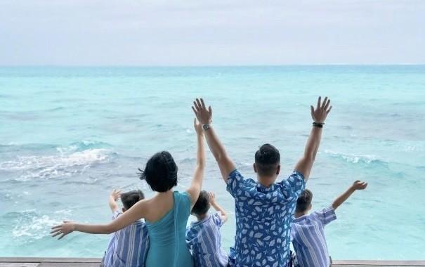 胡杏儿一家去马尔代夫度假了,全家人都穿蓝色衣服,看着特别亮眼,三个儿子长得跟三胞胎似的!
