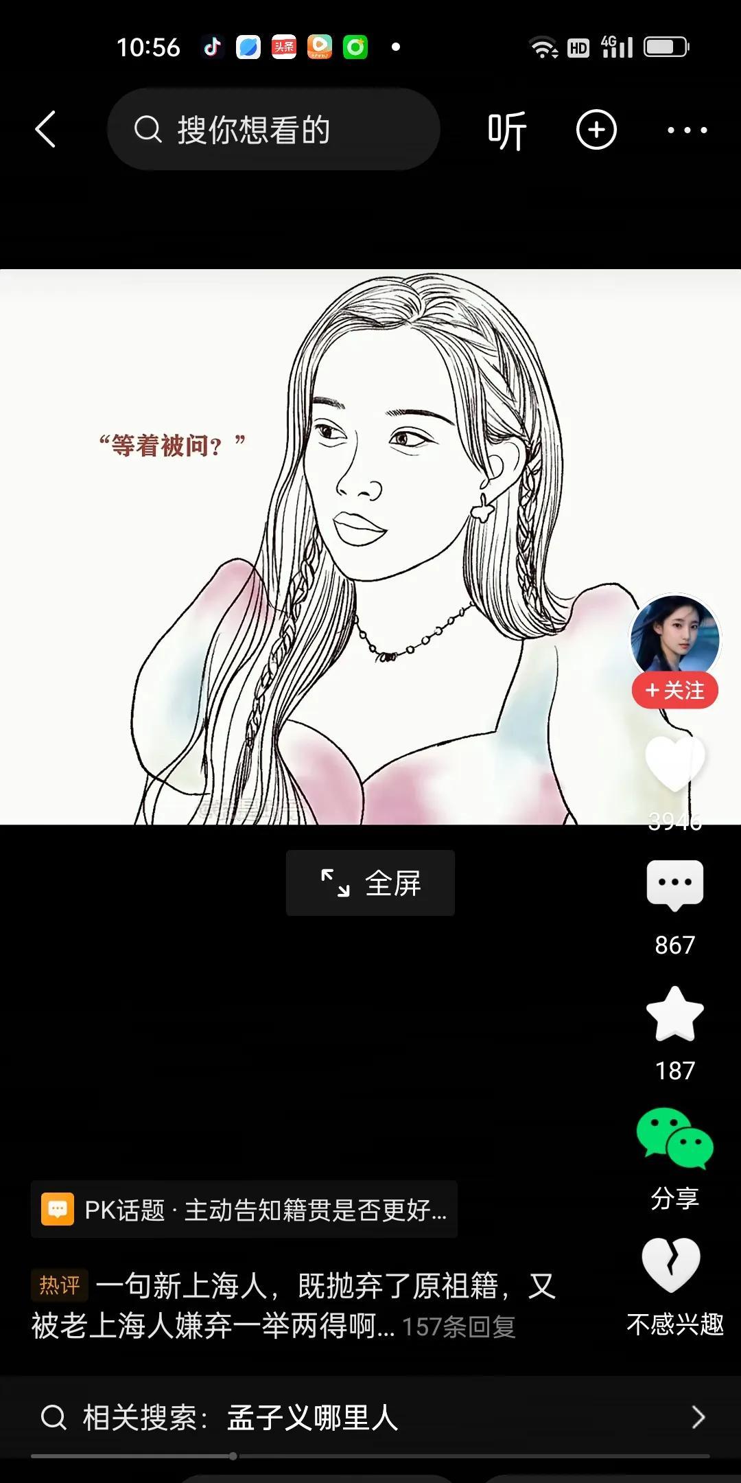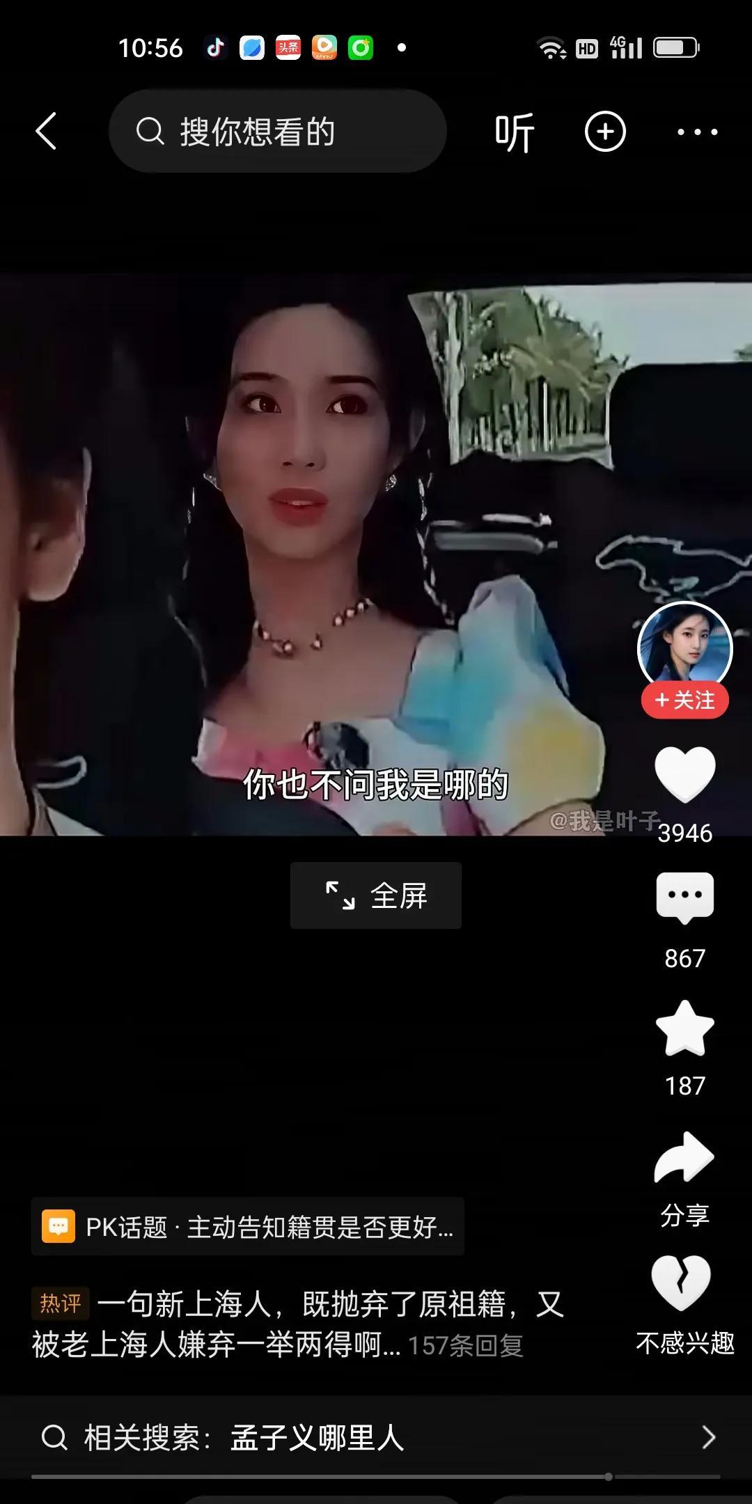孟子义问王传君是哪里人?王说我是上海人。另外一个男的说自己是新上海人。孟姐就在那里等他们问自己是哪里人。结果这俩人谁也没问。孟姐急得,你们就不问问我是哪里人吗?不用问,上海人很优越,在他们眼里,除了上海人就是外地乡下人。