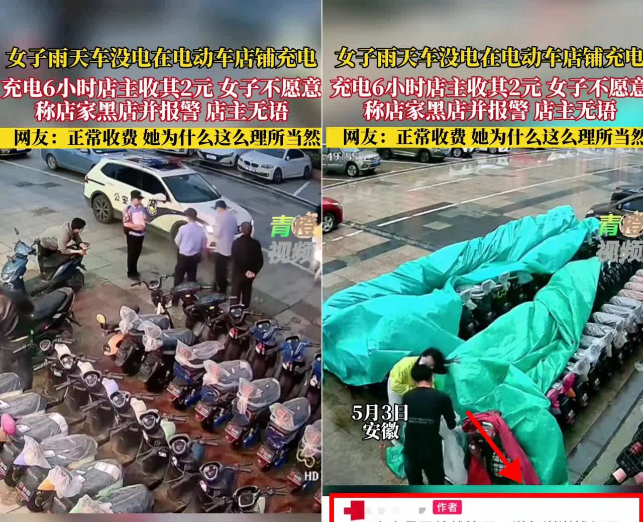 “2块钱都能闹到报警?”这女子把“占便宜”玩到极致了!送孩子补习遇上电动车没电,推着车淋雨问了好几家店都被拒 最后一家老板心软答应充电,还特意用雨布盖好车,结果6小时后女子要骑车走人,老板追着要2元电费,她竟翻脸骂黑店还报警! 评论区直接吵翻:有人骂她“铁公鸡”,老板雪中送炭反被讹,2元电费是成本不是施舍;也有人觉得老板事先没提钱,事后收费不合常理。 但绝大多数人站老板,帮是情分,不帮是本分,2元虽小,却照出了某些人的感恩缺失。 警察来了都认定收费合理,女子却得意洋洋骑车走人,这操作真是给孩子做了坏榜样。
