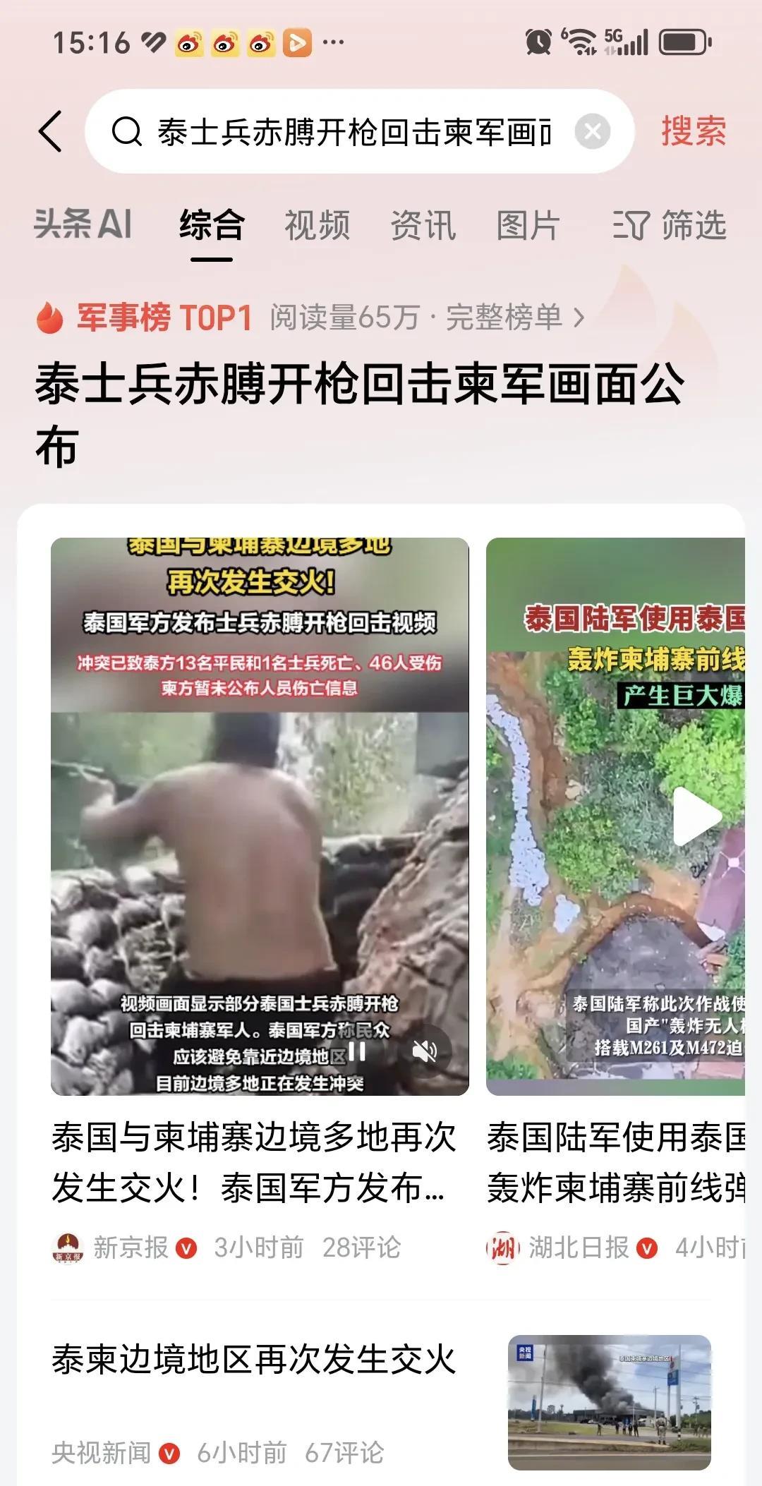 从道义和责任上说,真不希望邻居柬埔寨与泰图发生武装冲突,战争肯定会带来灾难,带来人员伤亡和财产损失。 但事情不是以人的意志为决定的,本轮柬泰边境冲突,柬埔寨要负主要责任,特别是洪森的做法,公布与泰国总理贝通坦的通话信息,置贝通坦总理陷入尴尬境地而丢失总理职务,明显的洪森就是想搞乱泰国政局,以为可以混水摸鱼。结果必定会是偷鸡不成,蚀把米。一个成熟的政客或正常的人,绝对是干不出来这样的损人不利己的事。