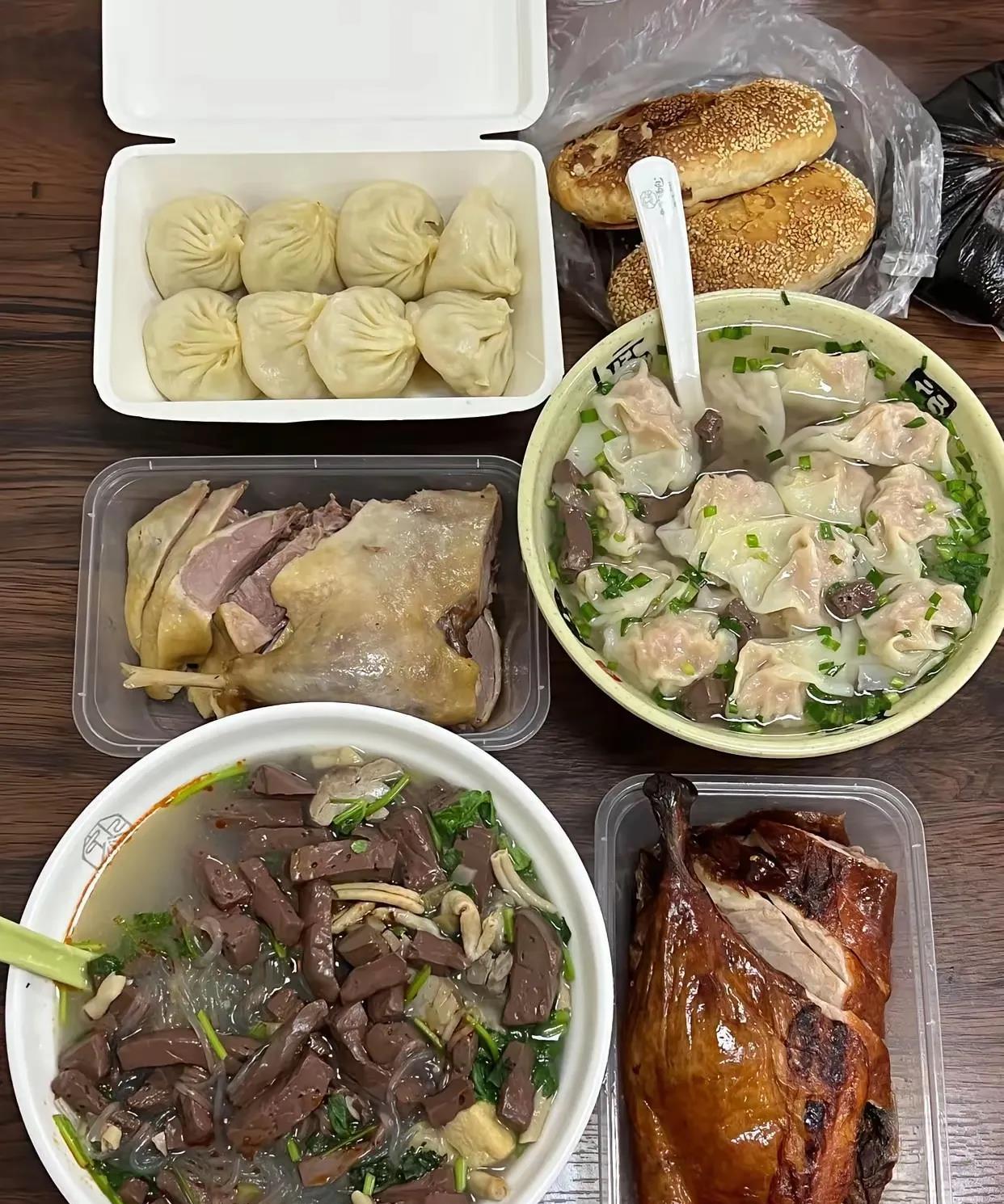一眼南京的东西,南京物价没这么贵:盐水鸭➕烤鸭撑死40,一碗鸭血粉丝汤16,一笼汤包16,汤家馄饨12,鸭油烧饼3.5/个,算下来100多一点!