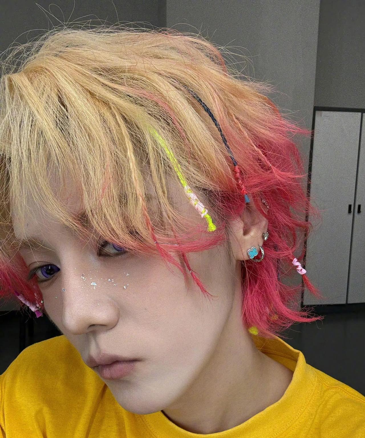 鹿晗这绚丽的彩色的头发, 让人看得很过瘾啊。 一般人可不敢这么染! 一来伤头发,