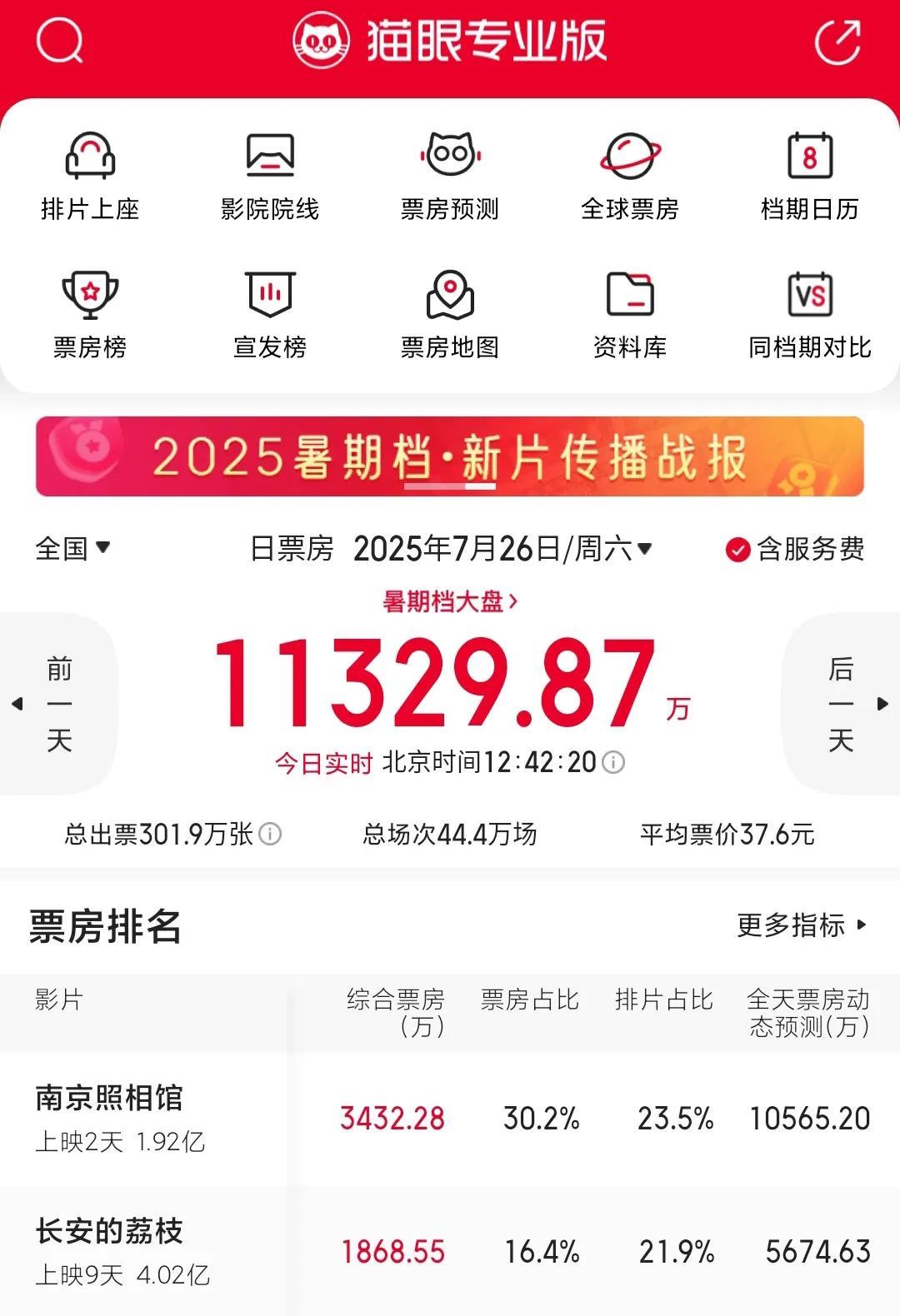 《南京照相馆》上映后带动暑期档大盘上涨,今天单日票房超过昨日,预计在2亿左右。上