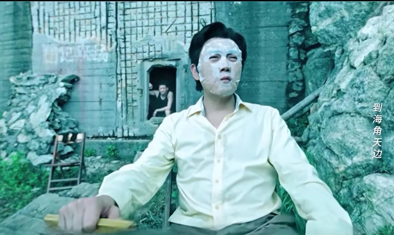 《扫毒风暴》卢少骅躲进防空洞后,依然是听音乐做面膜,身边还有王林给煮着方便面,王