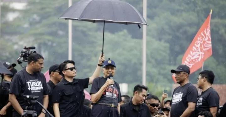 马来西亚“倒安瓦尔集会”于7月26日在吉隆坡举行。数千名集会者从市中心多个指定地点集结,游行至吉隆坡独立广场,要求首相安瓦尔下台 。 100岁高龄的马哈蒂尔,老当益壮,高温酷暑下出席集会,并向安瓦尔喊话。 他强调,若自己在白礁课题上有错,应通过法庭裁决,安瓦尔作为首相不是法官,不能自行判定其有罪,只有法官有此权力,并且自己既不怕被告上法庭,也不需要豁免权 。马哈蒂尔还批评安瓦尔既想当法官又想做检控官。 此前,安瓦尔称马哈蒂尔年事已高不会提起诉讼,但作为首相并无此权力,有越权之意 。此外,马哈蒂尔质疑安瓦尔是否获得大部分民众支持,以集会人数称若投票安瓦尔难获支持,呼吁安瓦尔效仿自己2020年遭终止党籍后辞去首相的做法,若不受民众喜爱就应主动下台 。 另外,马哈蒂尔孙子的住所遭遇盗窃。住宅于7月23日下午3时许被盗,房内存放价值180万令吉(约合人民币282.7万元 )的珠宝首饰。案发当天,住所女佣发现后门铁门被剪断、房间被偷盗。吉隆坡代总警长莫哈末尤索夫证实,截至7月25日仍未确认嫌犯身份,警方正调阅受害者住宅闭路电视录像展开调查 。 这些事件反映出马来西亚当下政局的复杂与博弈,以及社会层面的治安状况。