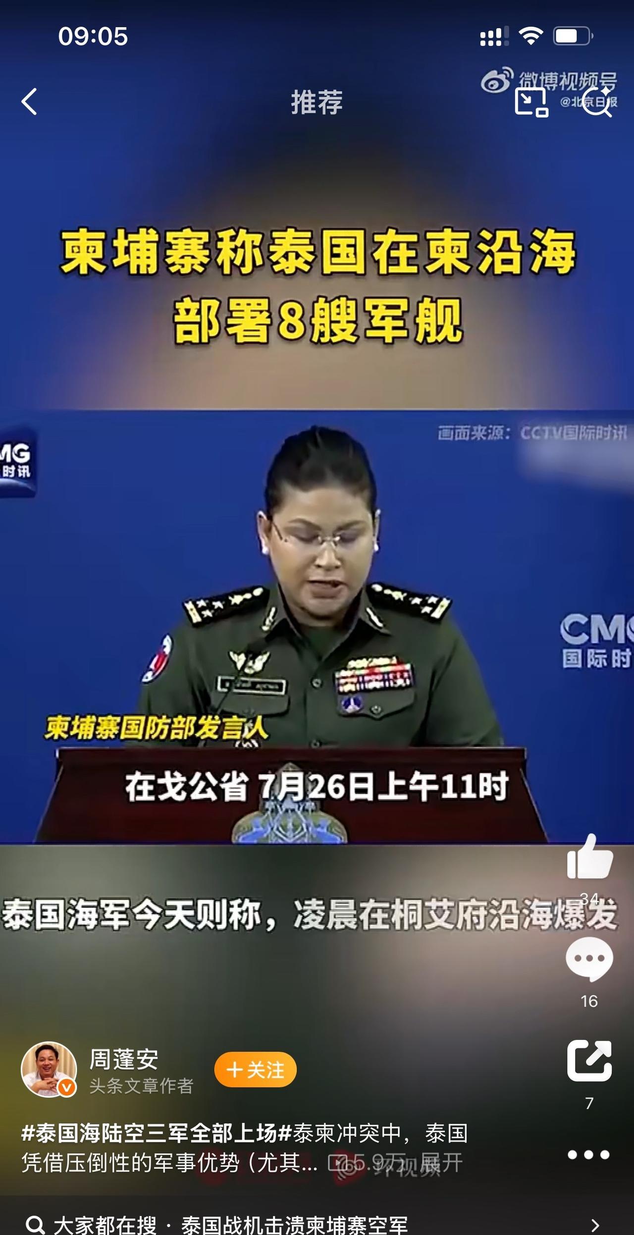 柬埔寨军队“特色”——13万军队,3000多名将军 泰国海陆空三军全部上场 泰柬冲突中,泰国凭借压倒性的军事优势(尤其是F-16和“鹰狮”战机)对柬埔寨实施精准打击,确实如“杀鸡用牛刀”。柬埔寨虽有军队,但装备落后,防空能力几乎为零,空军主力仍是老旧的米格-21,面对泰国的空袭毫无招架之力。然而,柬埔寨军队的“特色”在于其畸形的军官结构——13万军队竟有3000多名将军,平均每34名士兵配一名将军,堪称全球最高“将军密度”。 这种“将军泛滥”现象源于历史遗留问题和政治交易,导致指挥体系臃肿、效率低下,此前边境冲突中甚至出现一个旅指挥部挤进12名将军的荒诞局面。泰国的军事优势固然明显,但柬埔寨若继续依赖“人海将官”而非现代化战力,未来冲突中仍将处于绝对劣势。#泰国柬埔寨局势# #柬埔寨局势# #柬埔寨战略#
