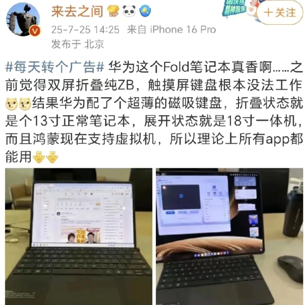 我早就说了:华为折叠电脑比之前那些所谓概念机的折叠屏电脑是两个东西。